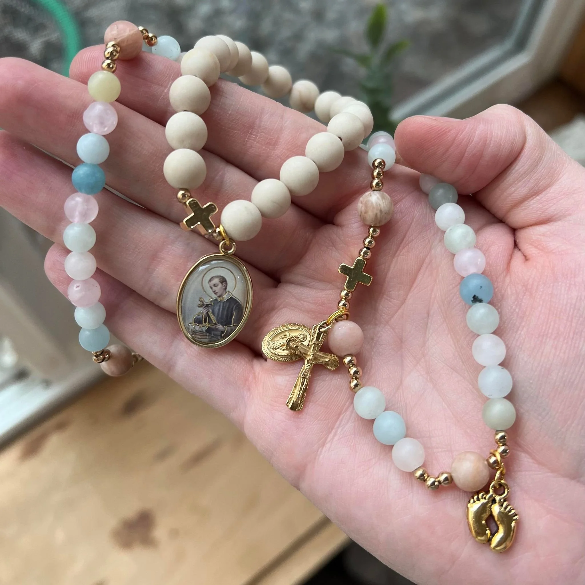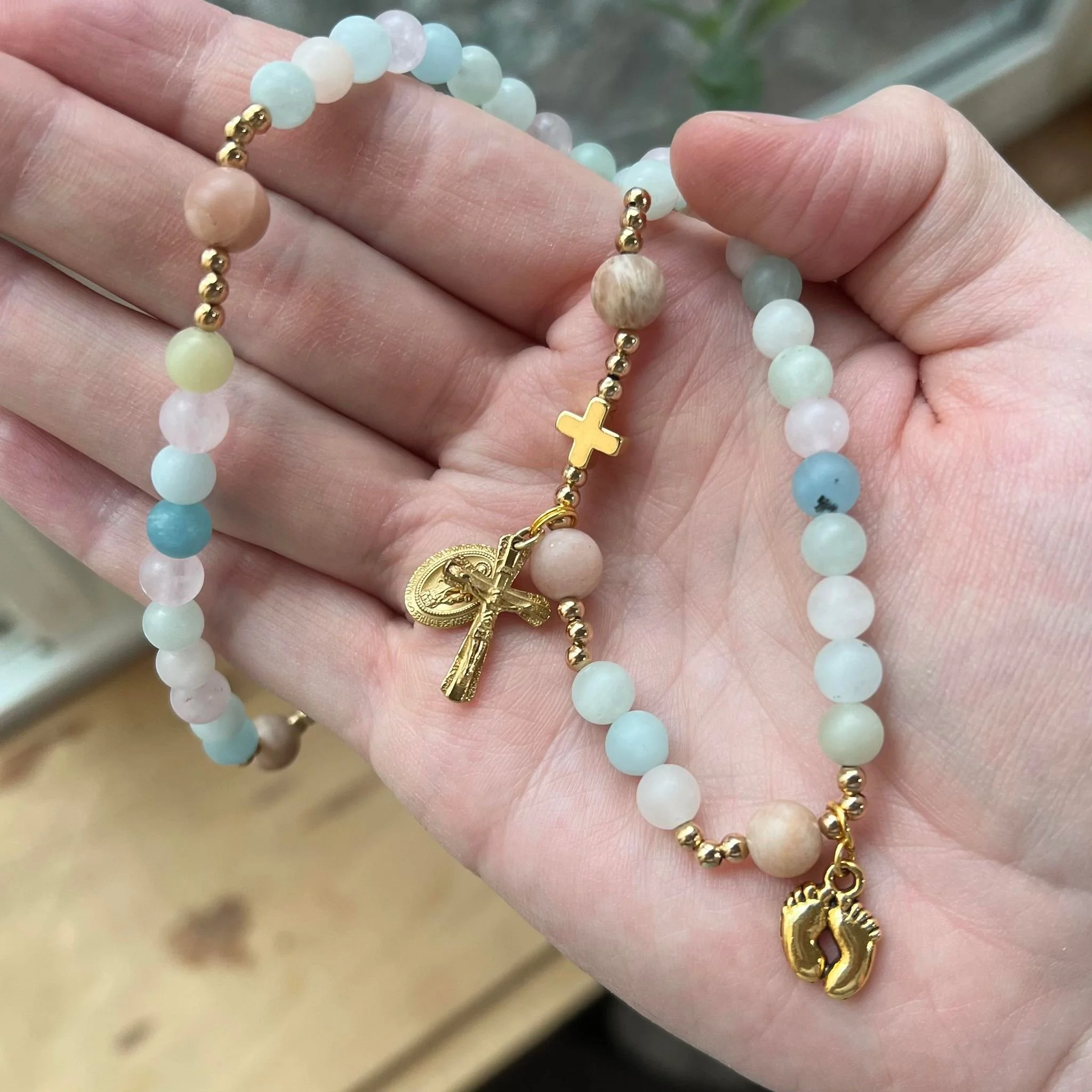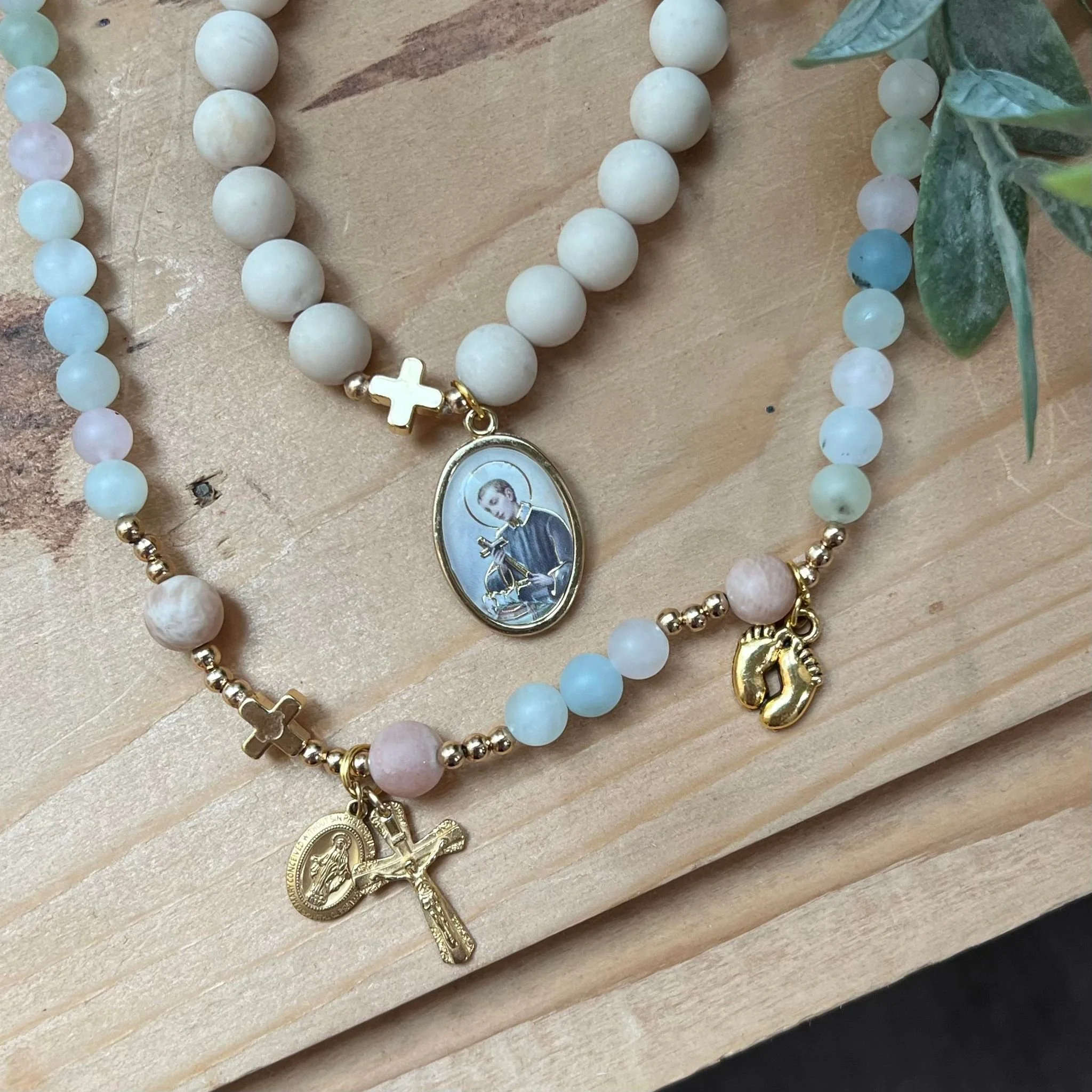THIS BRACELET has been a long time coming. I couldn’t decide between calling it St. Gerard, St. Anne, St. Philomena, St. Raymond… so it’s the “Expectant Mother’s” bracelet and mothers can wear it with a devotion in mind to ALL of the Saints mentioned.