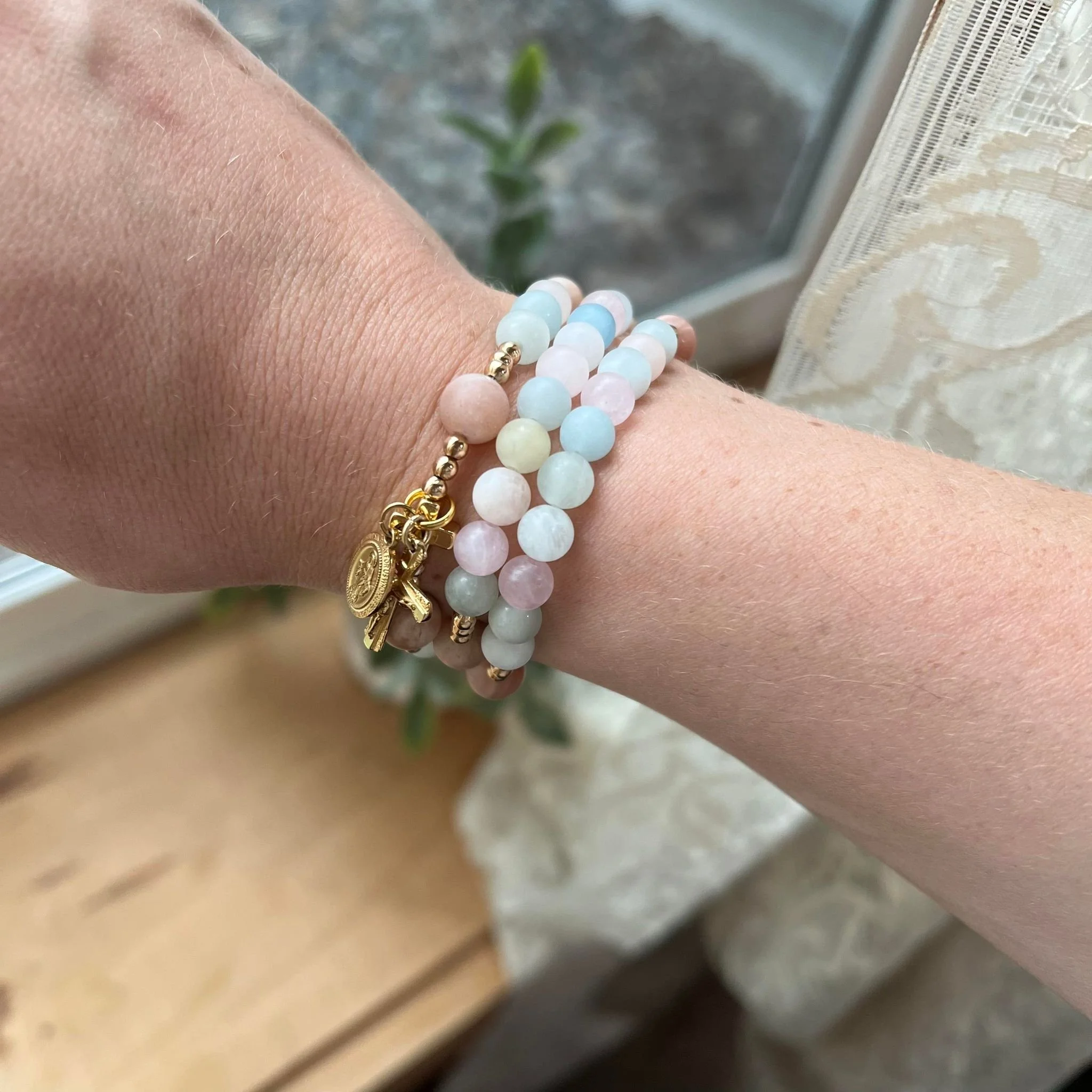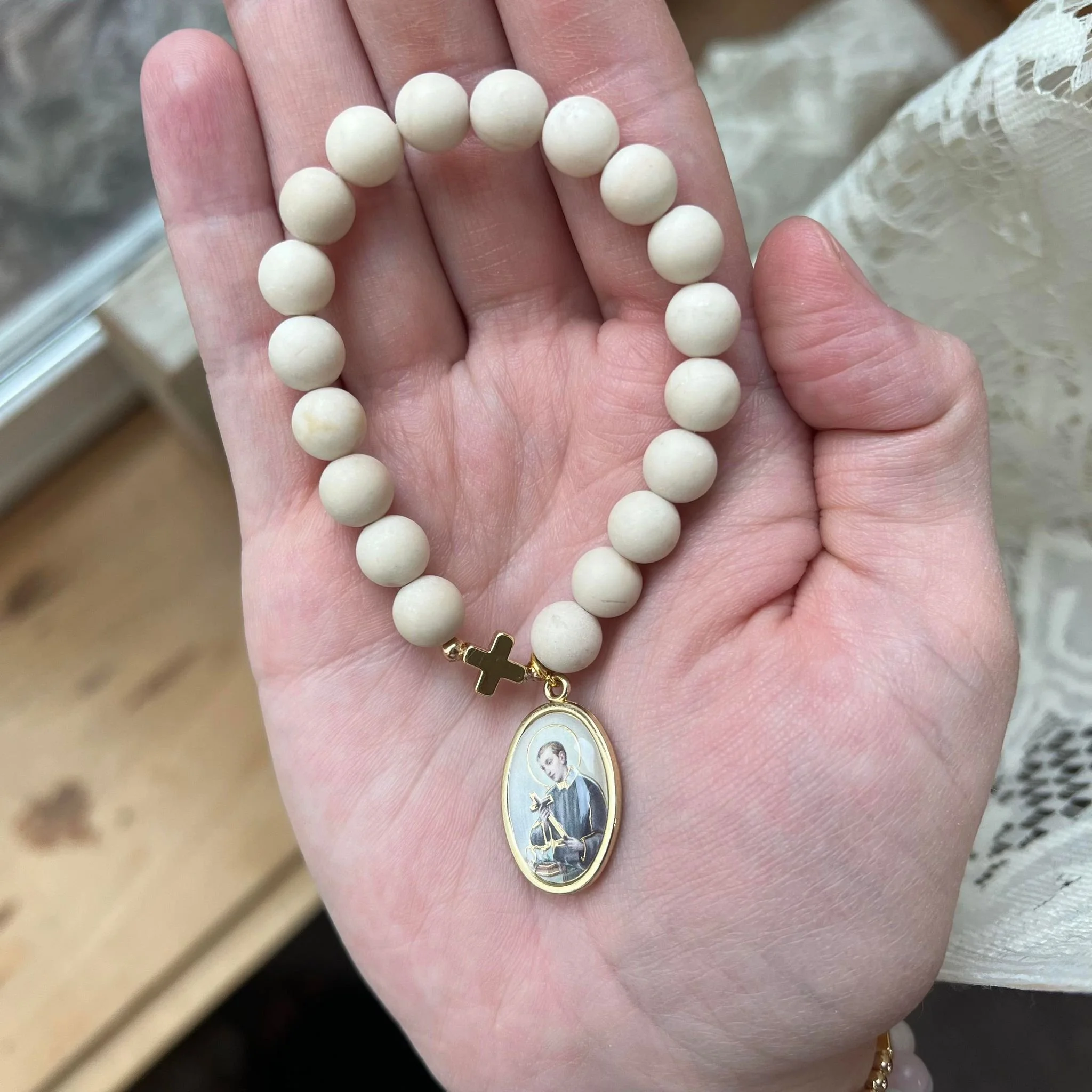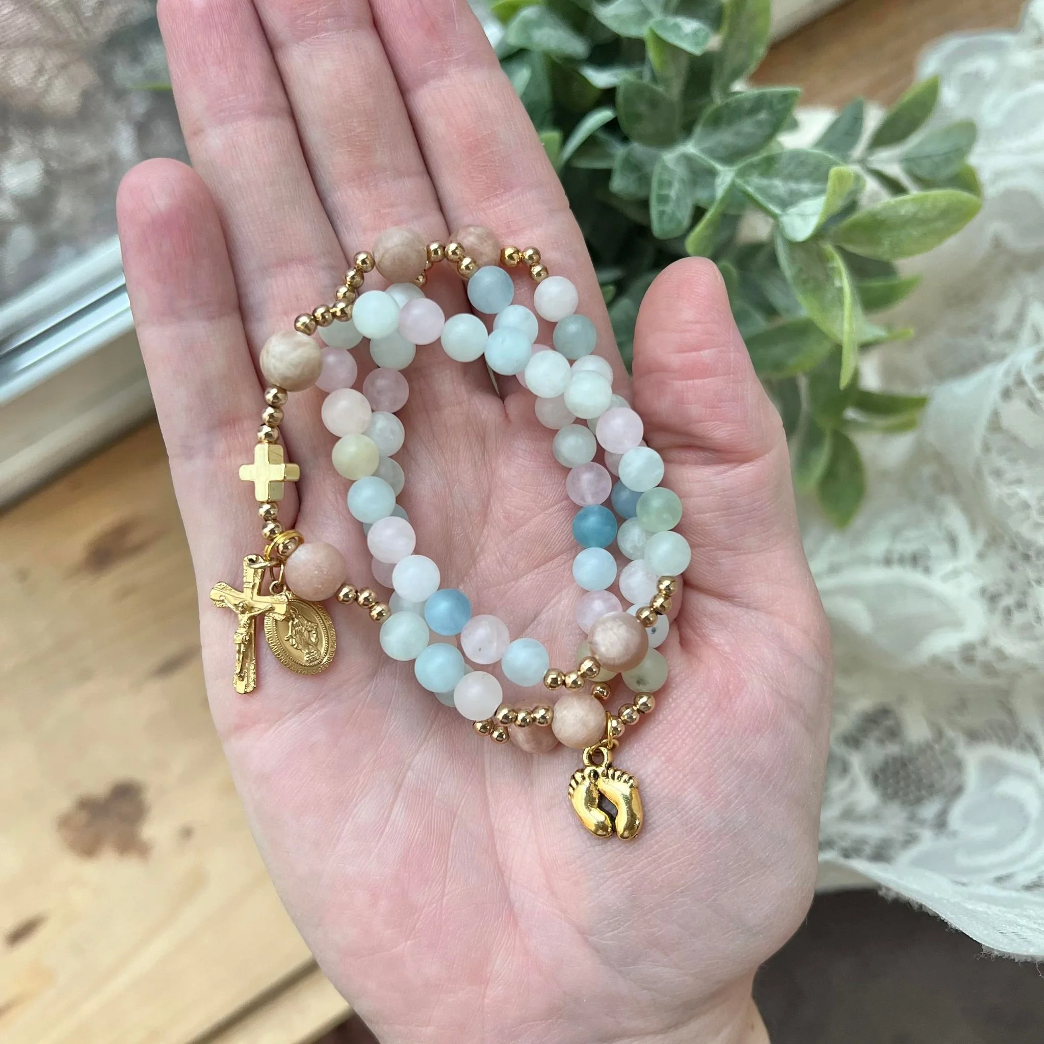 THIS BRACELET has been a long time coming. I couldn’t decide between calling it St. Gerard, St. Anne, St. Philomena, St. Raymond… so it’s the “Expectant Mother’s” bracelet and mothers can wear it with a devotion in mind to ALL of the Saints mentioned.